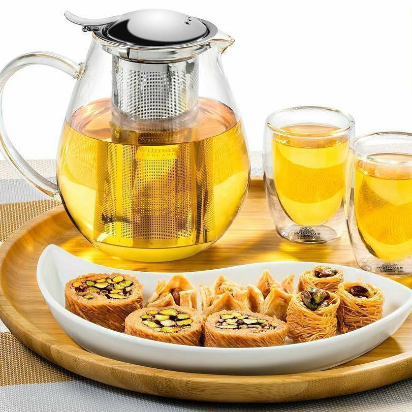 Platter Details: 13" diameter (33 cm), round, natural bamboo.