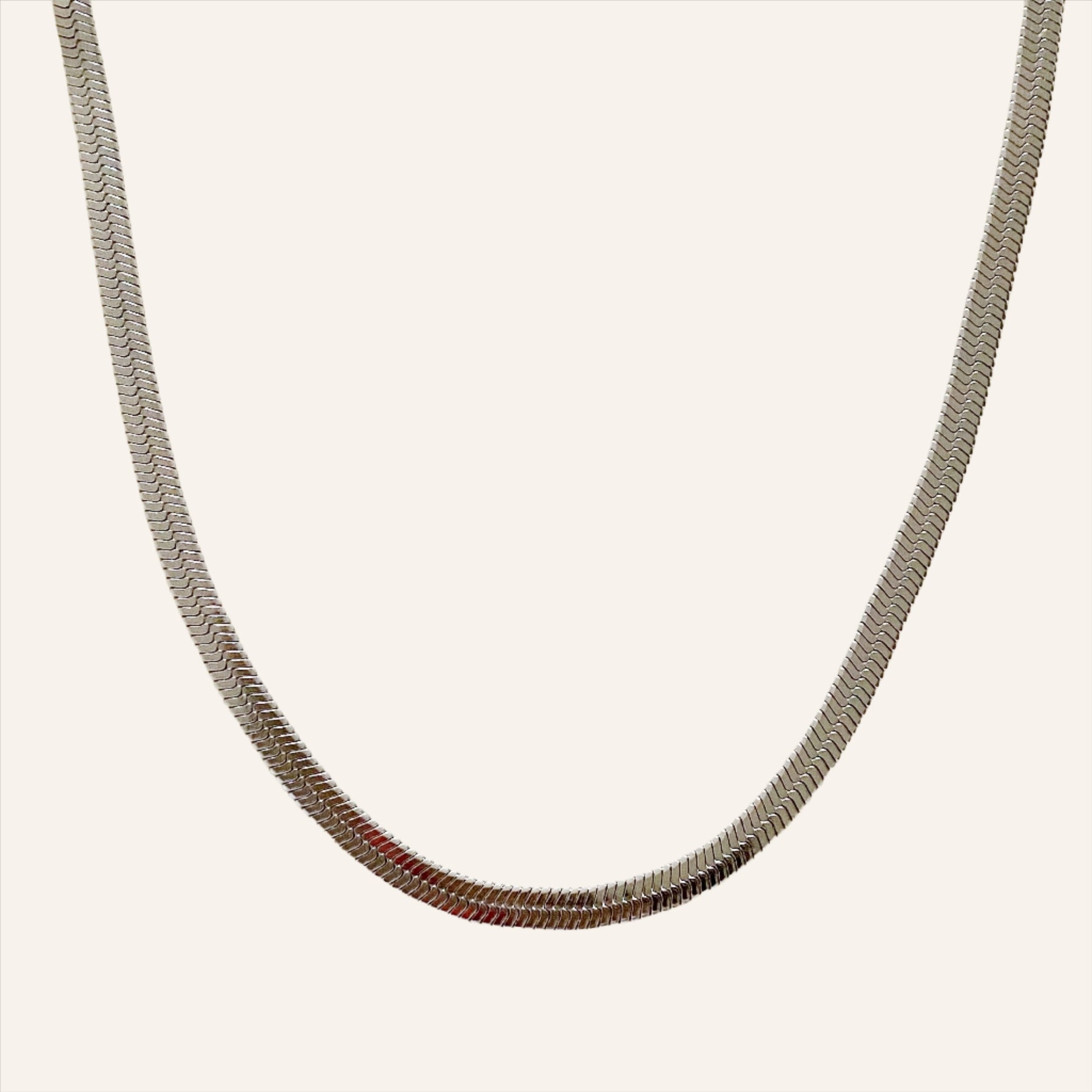This classic herringbone chain is the perfect width for making a statement or for everyday styling. This elegant piece is also great for layering, adding a touch of sophistication to any outfit.