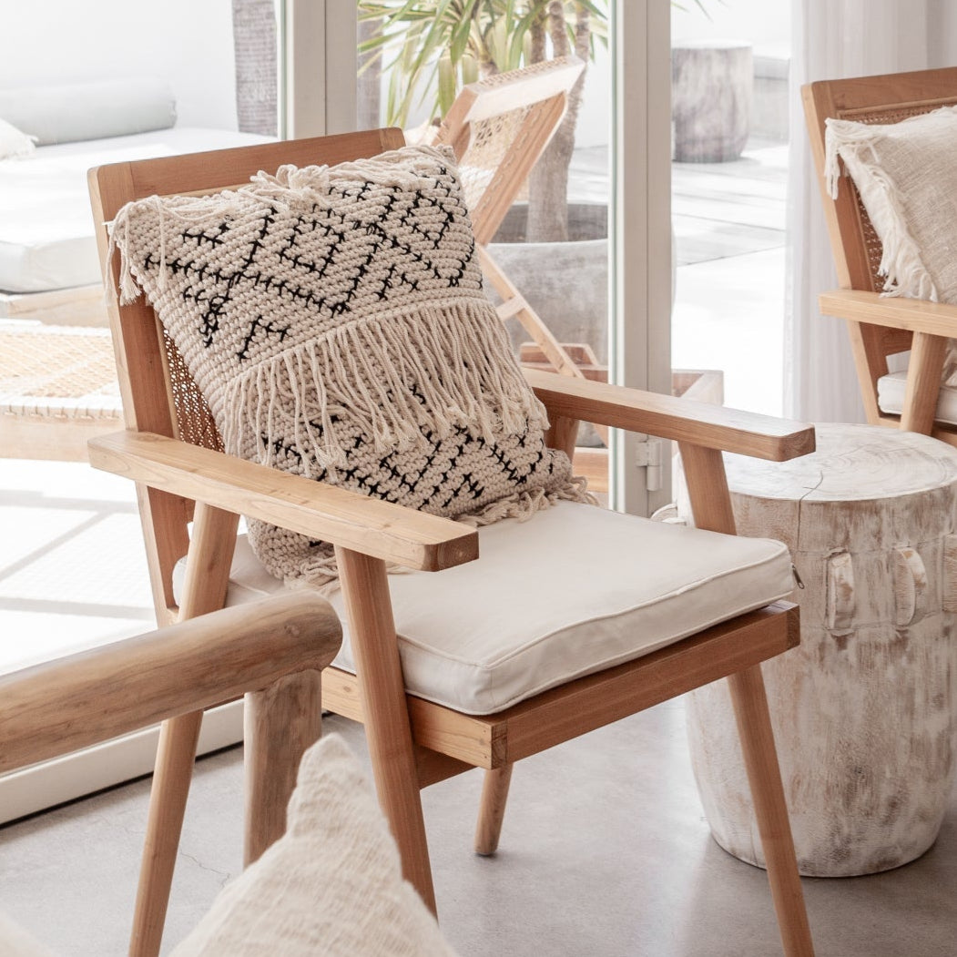Handmade Organic Cotton Tasseled Pillow Cover, Boho Macrame