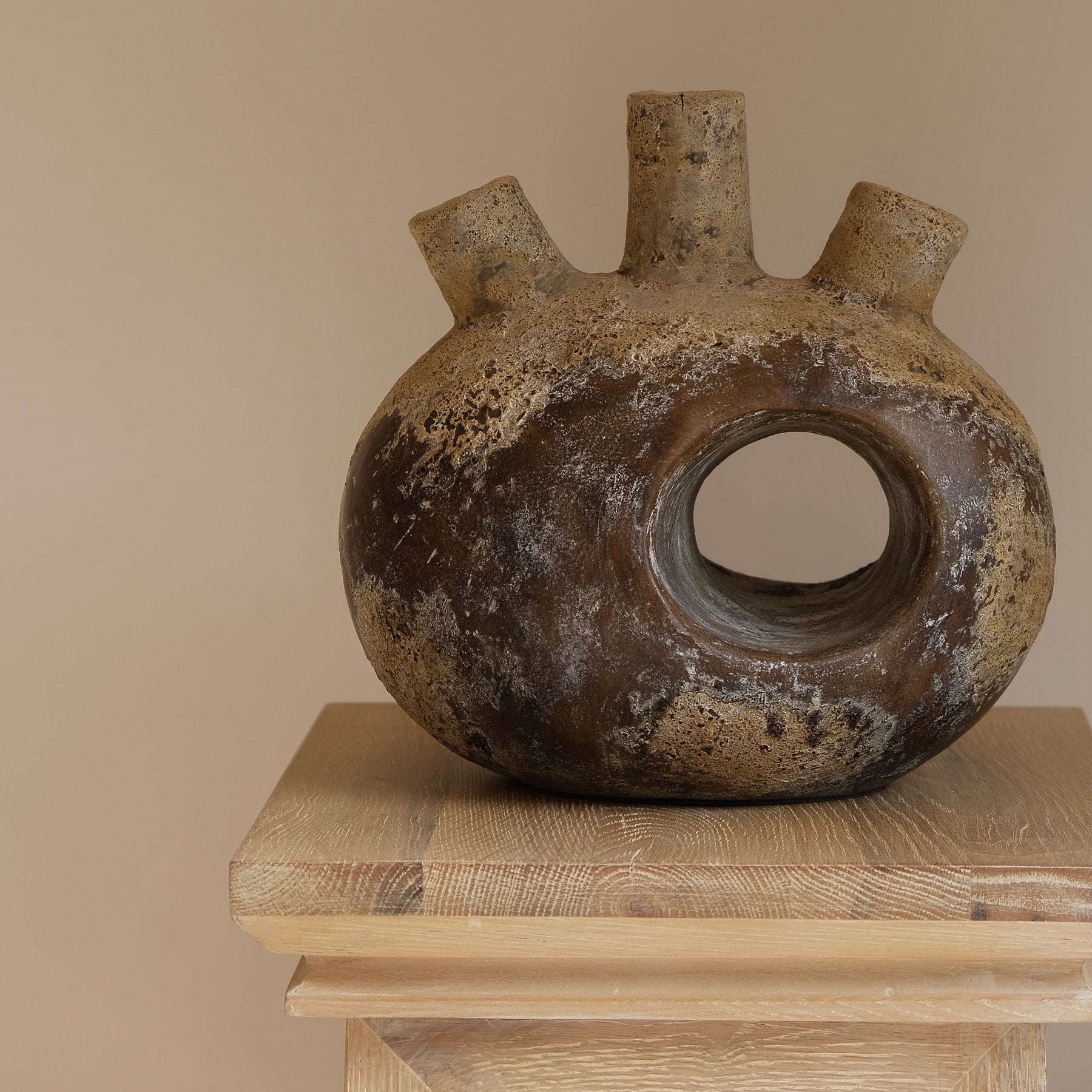 This one-of-a-kind terracotta vessel is handmade by local Indonesian artisans and inspired by the Indonesian word "jantung", meaning "heart." Its form resembles a cardiovascular organ and reflects generations of passed-down sculpting techniques. The vessel features a natural, earthy color palette and a vintage-style finish that enhances its authenticity and durability.